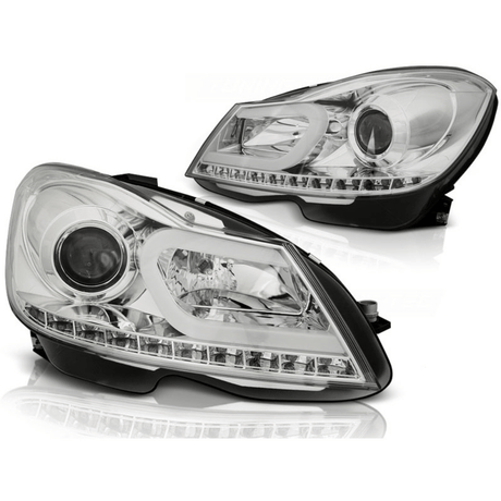 €84,00 EURGrundpreis /Nicht verfügbarAuf LagerLED Scheinwerfer mit Tagfahrlicht für Mercedes C-Klasse W204 (2007-2010) - Chrom